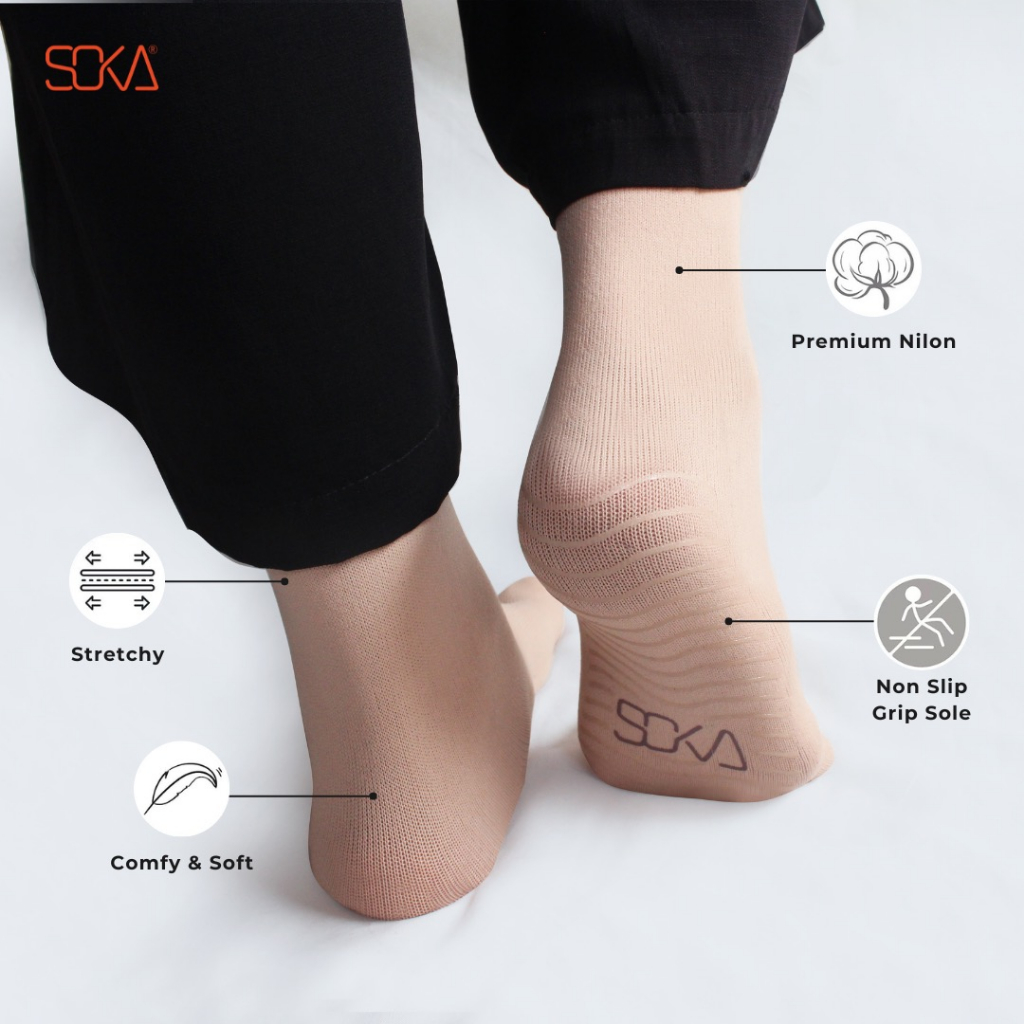 SOKA Kaos Kaki Jempol Anti Slip Licin Antislip Premium Wanita Muslimah. Kaos kaki jempol Anti Slip ini hadir sebagai solusi, kalau kamu habis wudhu di masjid dan mau langsung pakai kaos kaki tapi lantai masjid biasanya licin-licin gitu kadang takut jatuh, naaah kaos kaki jempol ini wajib banget kamu punya nih, jadi selesai wudhu bisa langsung pake ,sekarang sudah tidak takut jatuh lagi karena dibagian bawah kaos kaki ini terdapat karet yang anti slip.